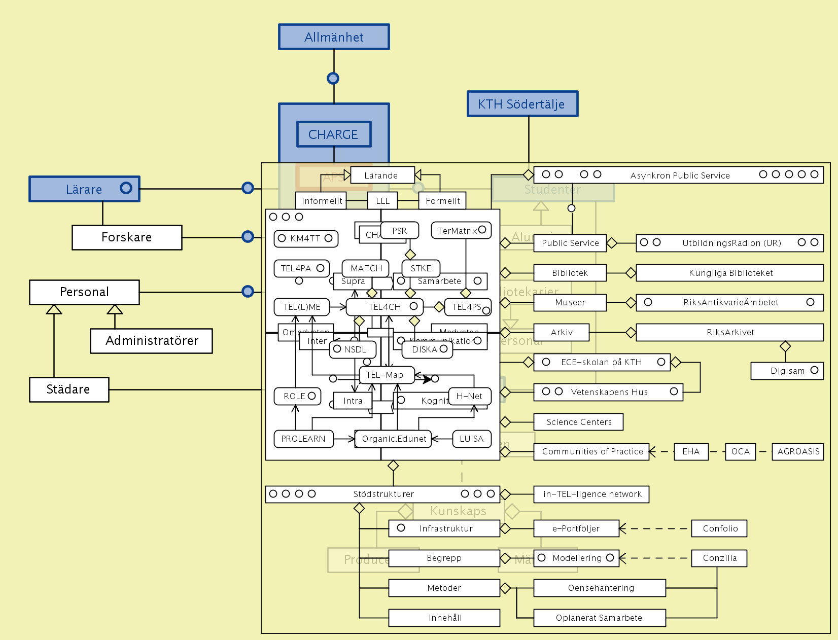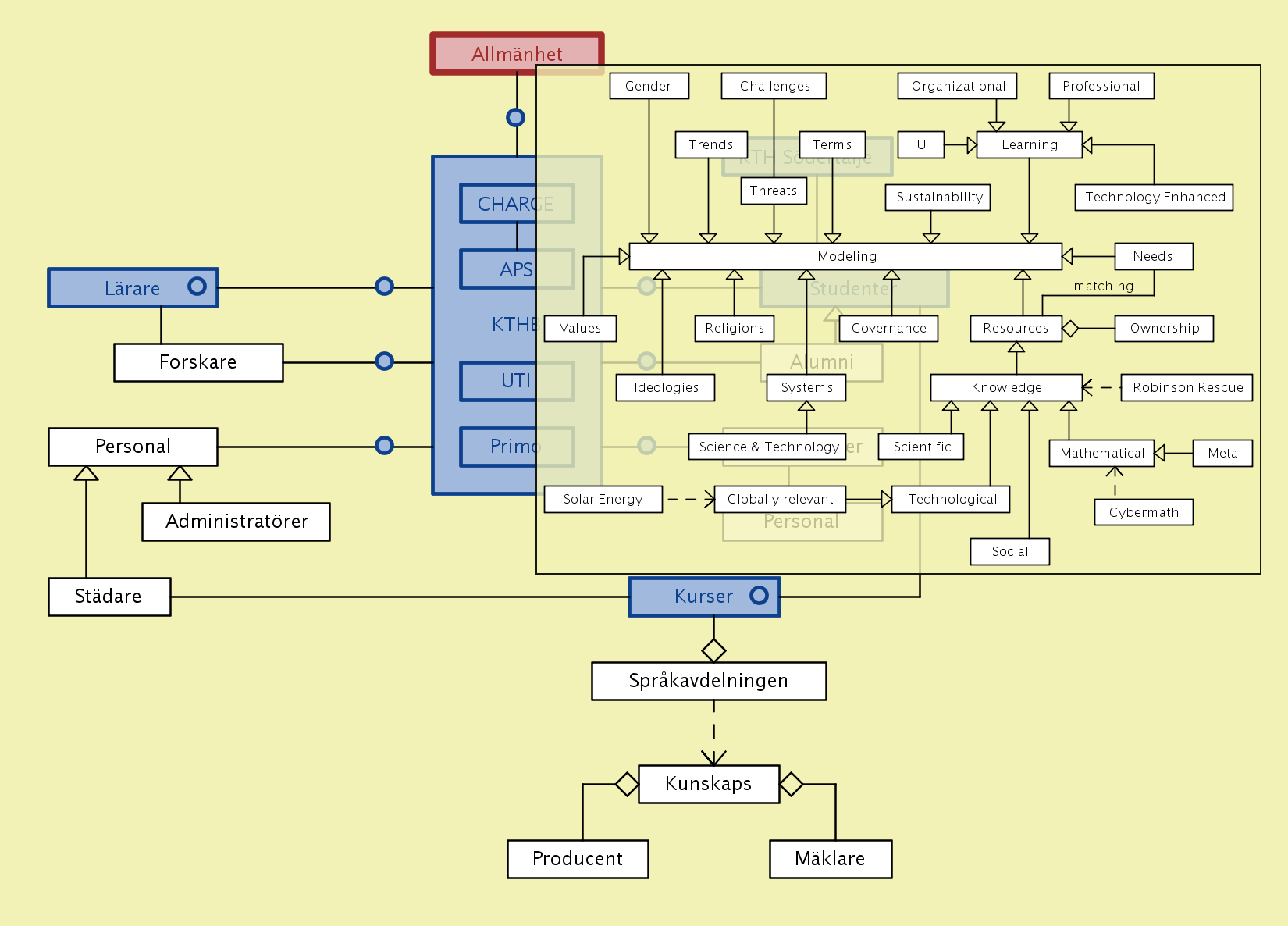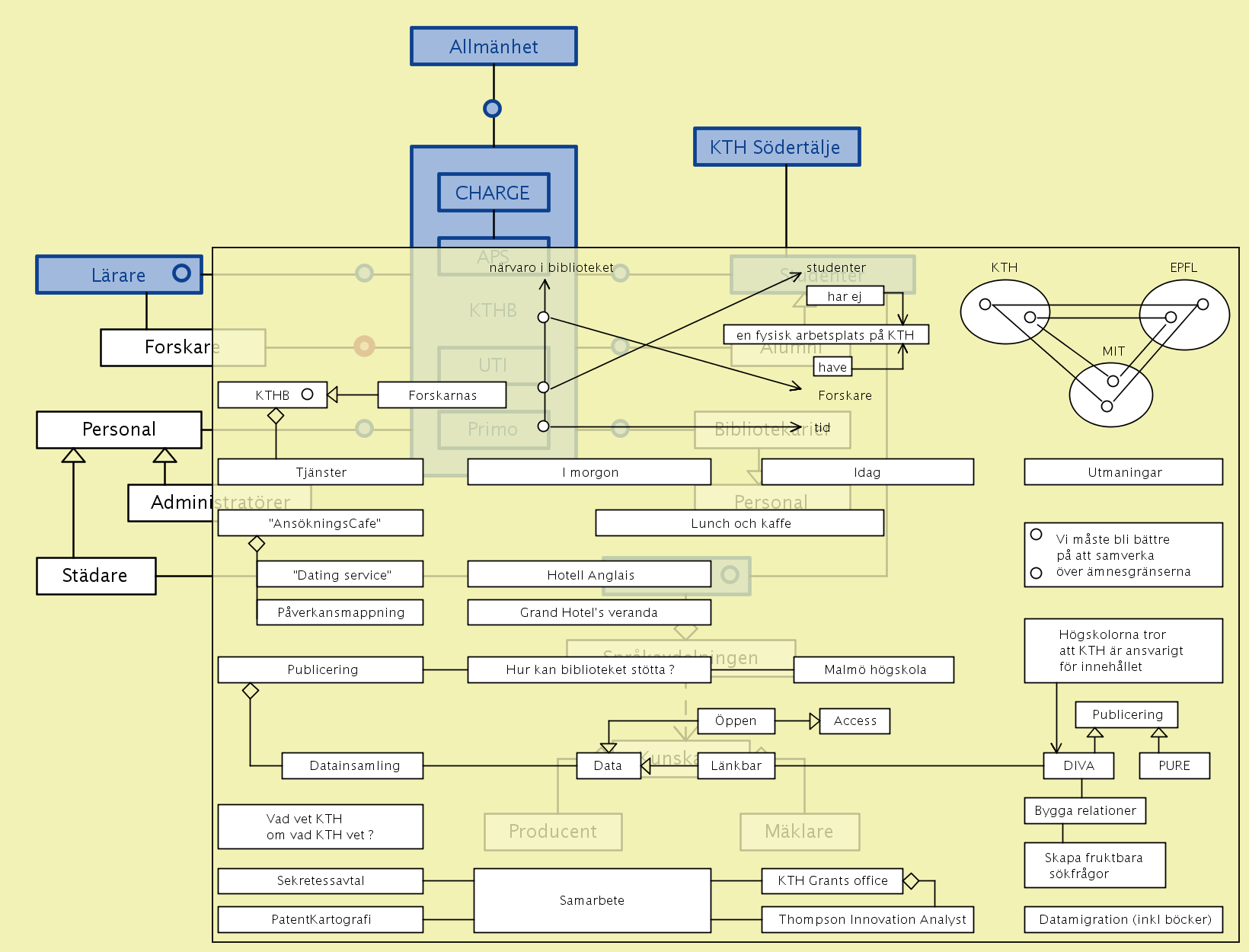 A new type of training for librarians – with the working title “knowledge modeling from a life-long learning perspective” – is presently being discussed in collaboration between the KTH library (KTHB) and the Swedish School of Library and Information Science (SSLIS) at the Borås University College (HiB) within the framework of a research manifesto that we call CHARGE (described further below).