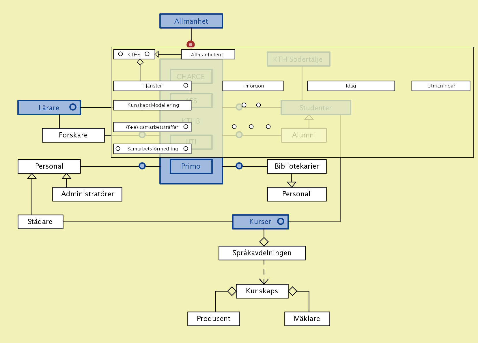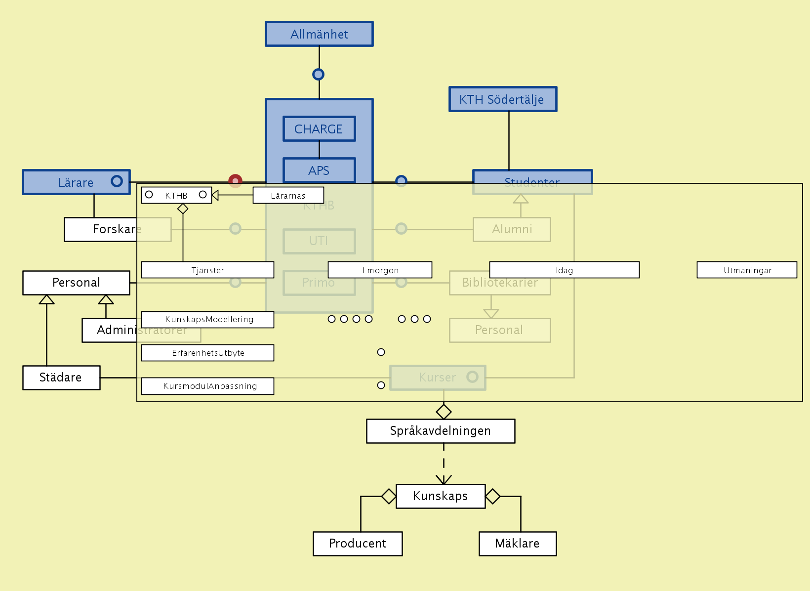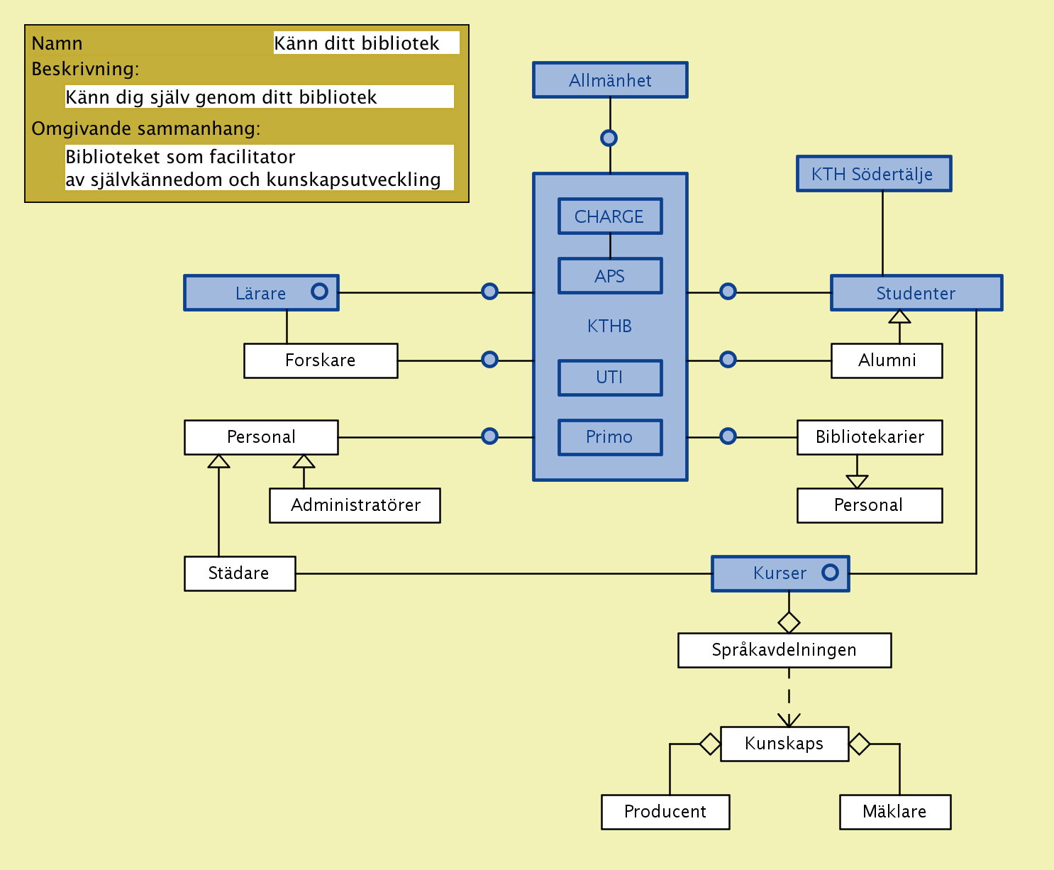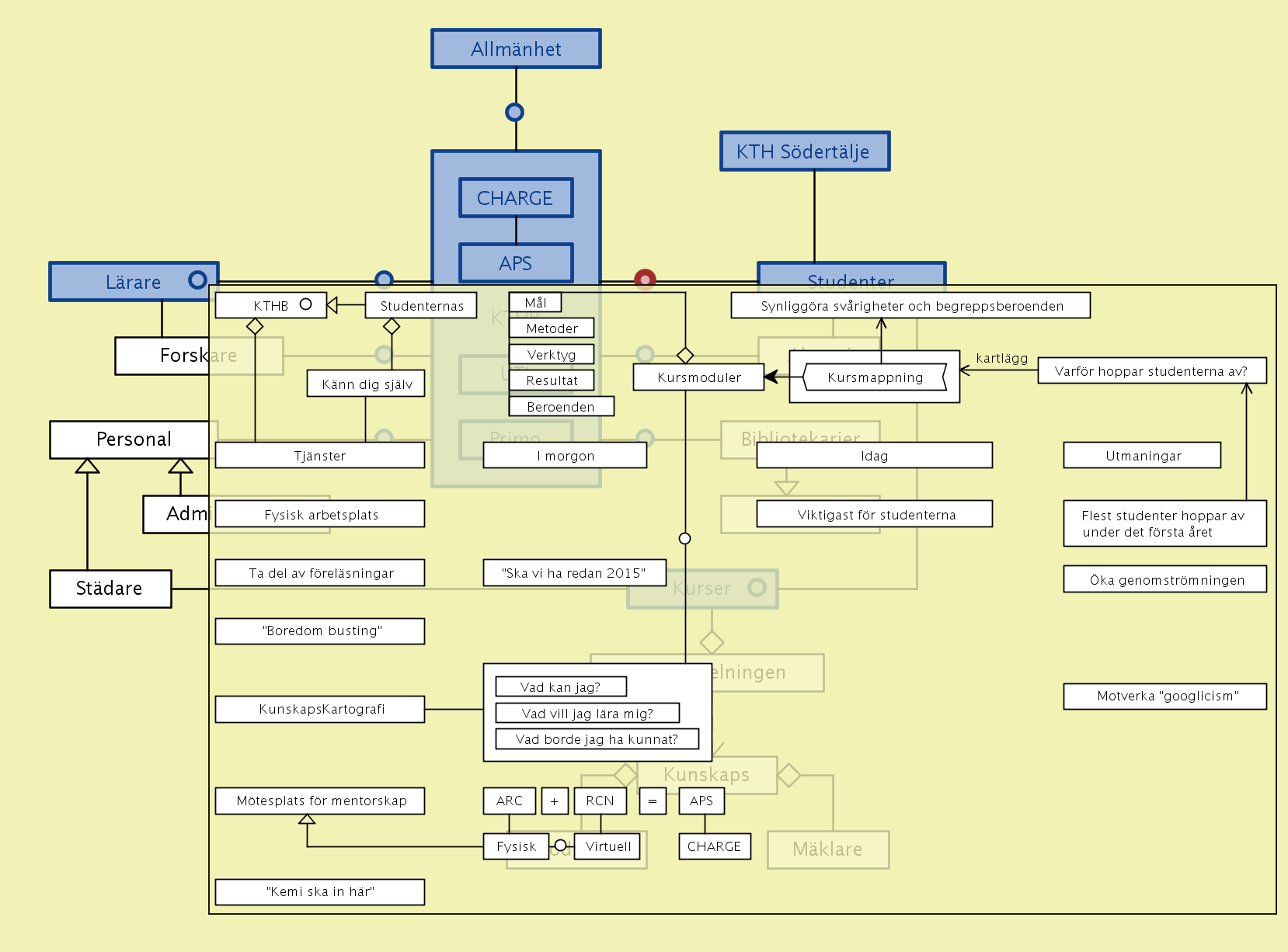 A new type of training for librarians – with the working title “knowledge modeling from a life-long learning perspective” – is presently being discussed in collaboration between the KTH library (KTHB) and the Swedish School of Library and Information Science (SSLIS) at the Borås University College (HiB) within the framework of a research manifesto that we call CHARGE (described further below).