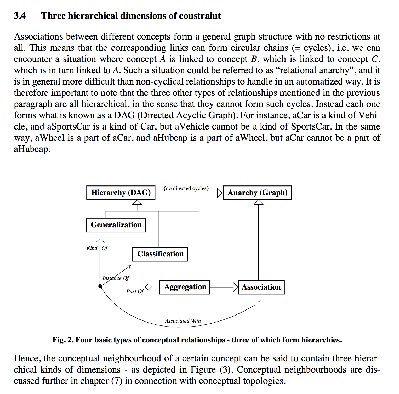 Four basic types of conceptual relationships – three of which form hierarchies: