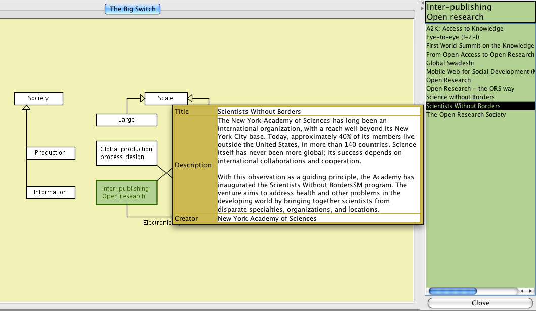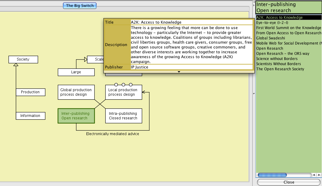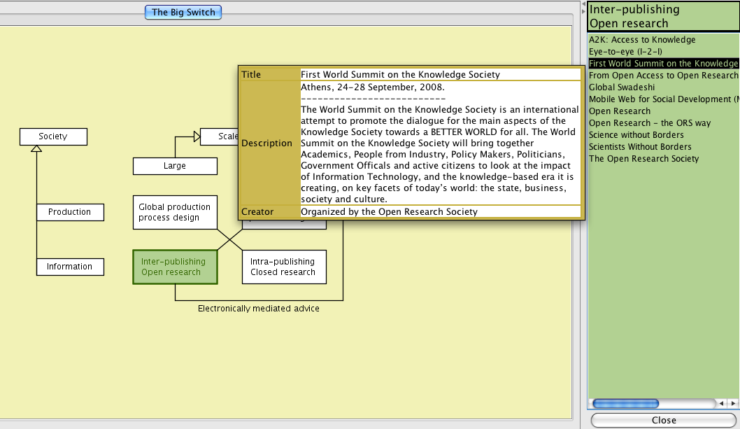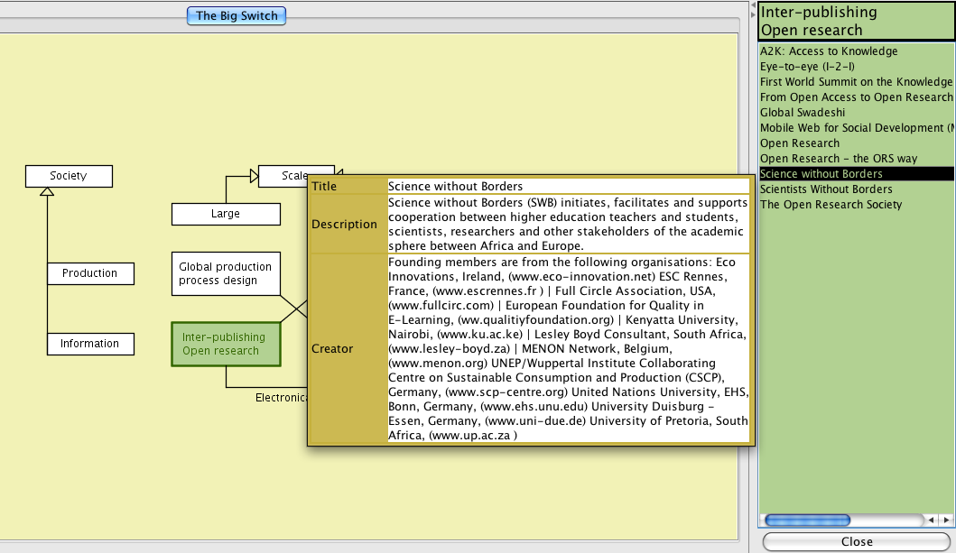 Screen dumps from the conzilla map on The Big Switch: