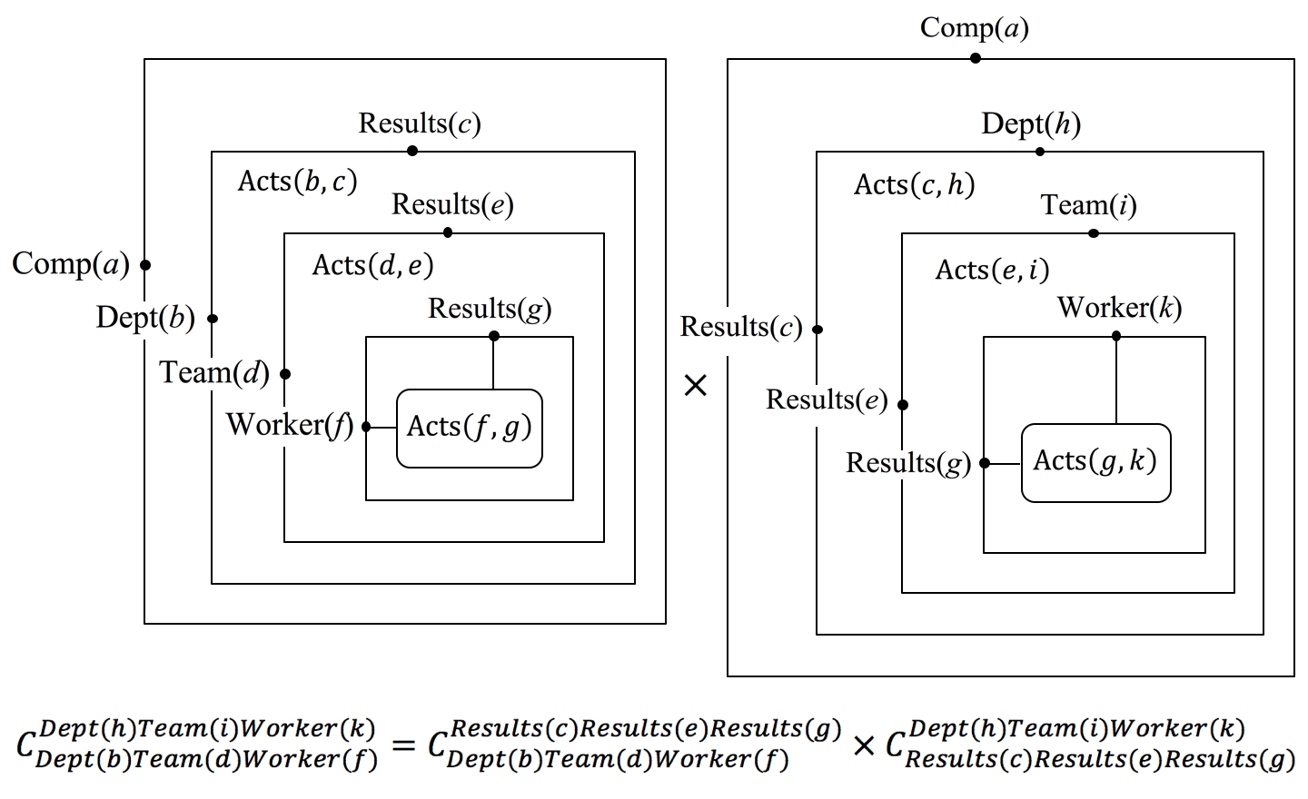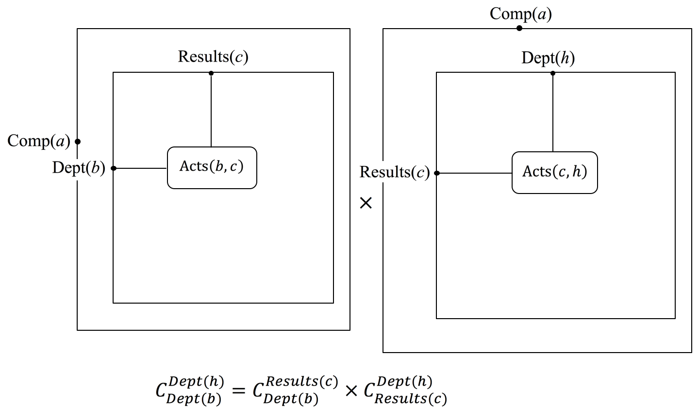 \, K_{Dept(b)}^{Dept(h)} \triangleq P_{Dept(b)}^{Results(c)} \times D_{Results(c)}^{Dept(h)} \, .