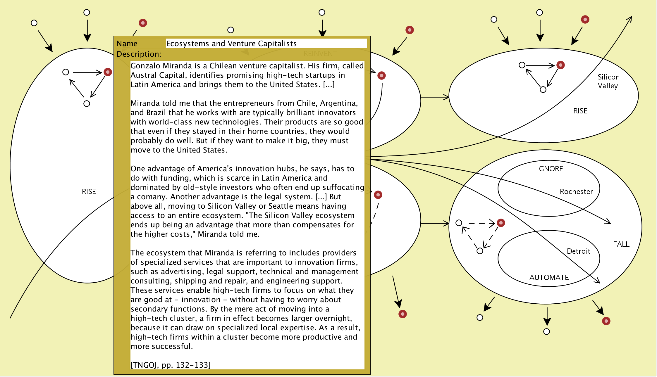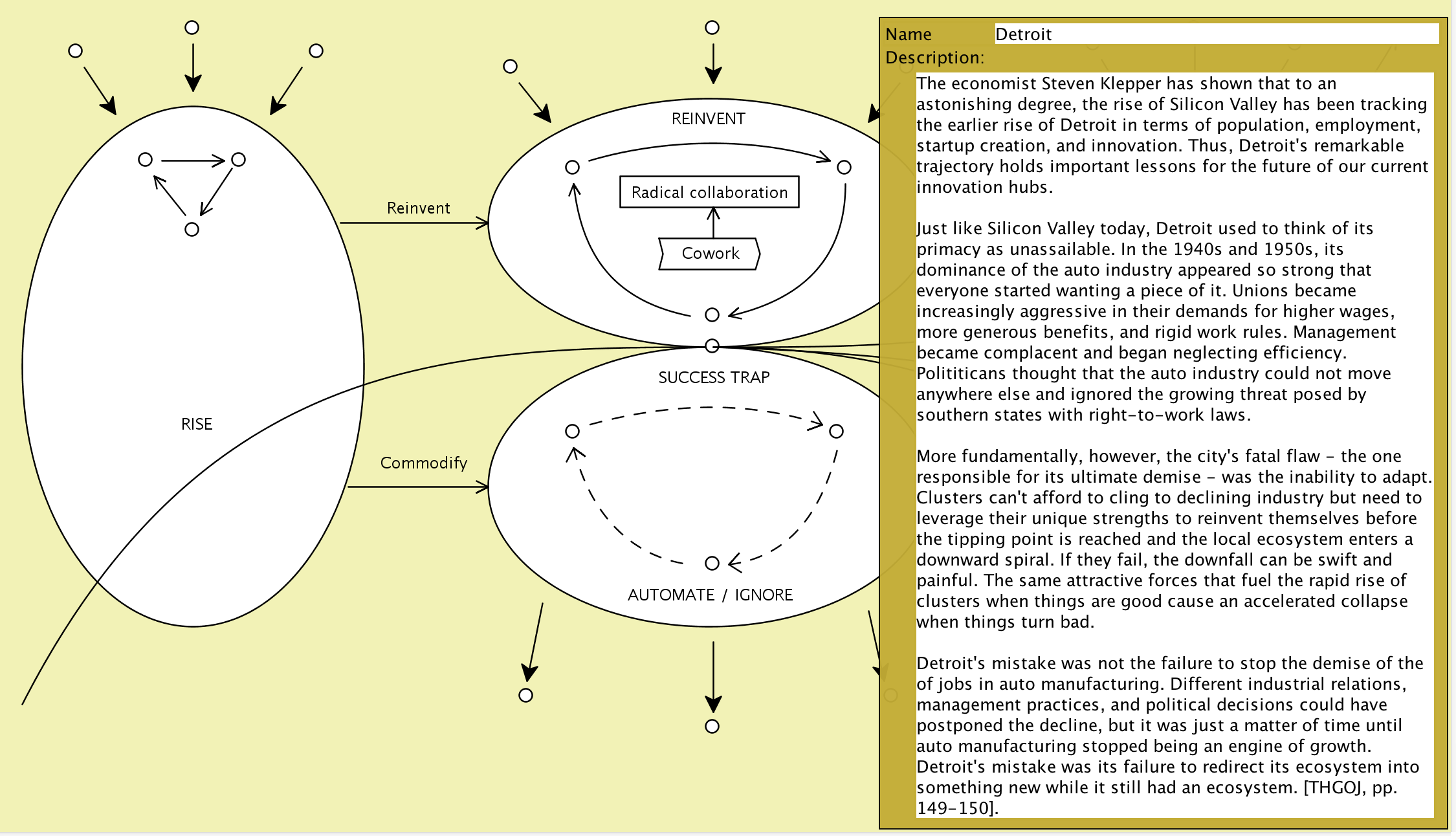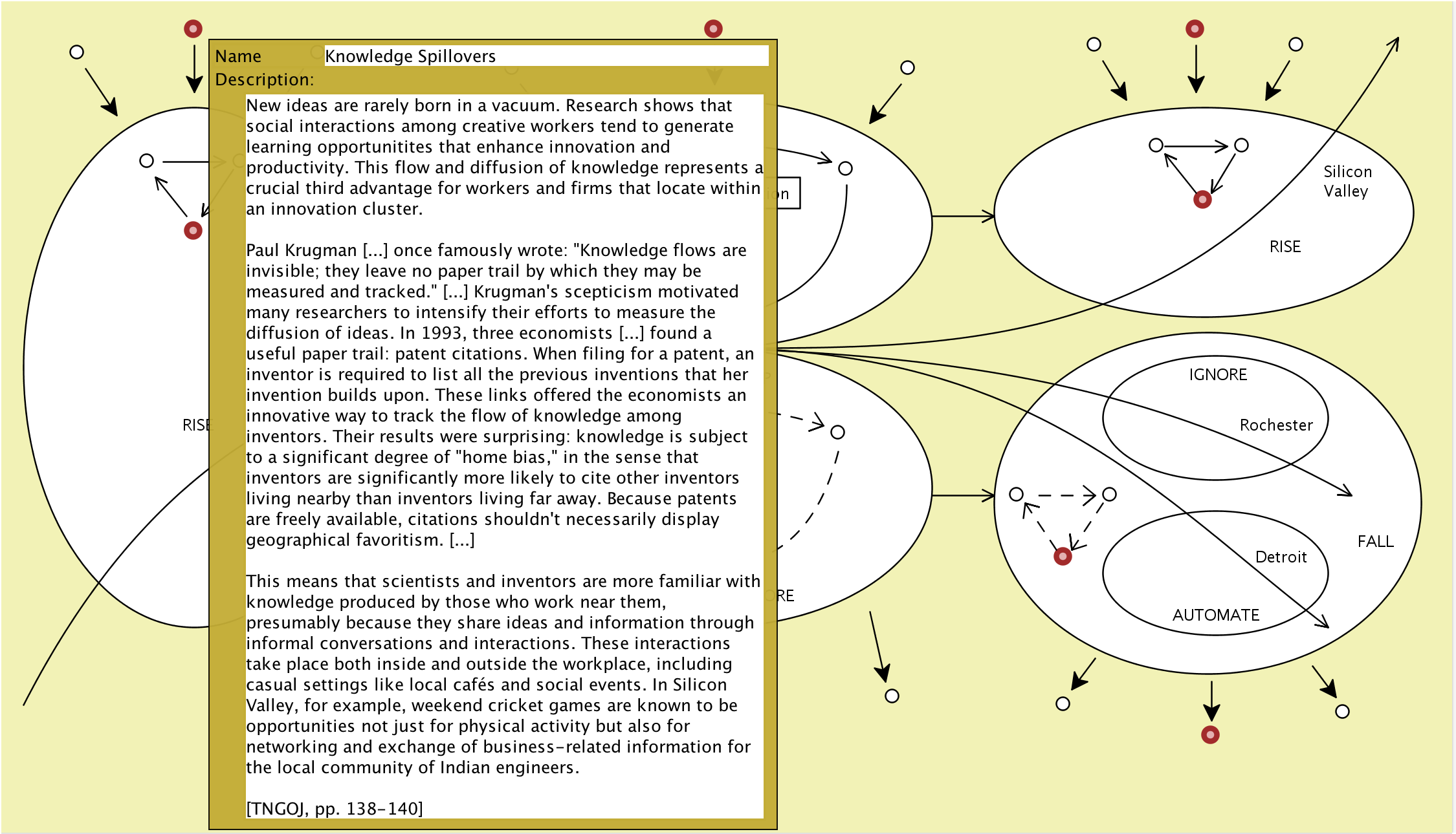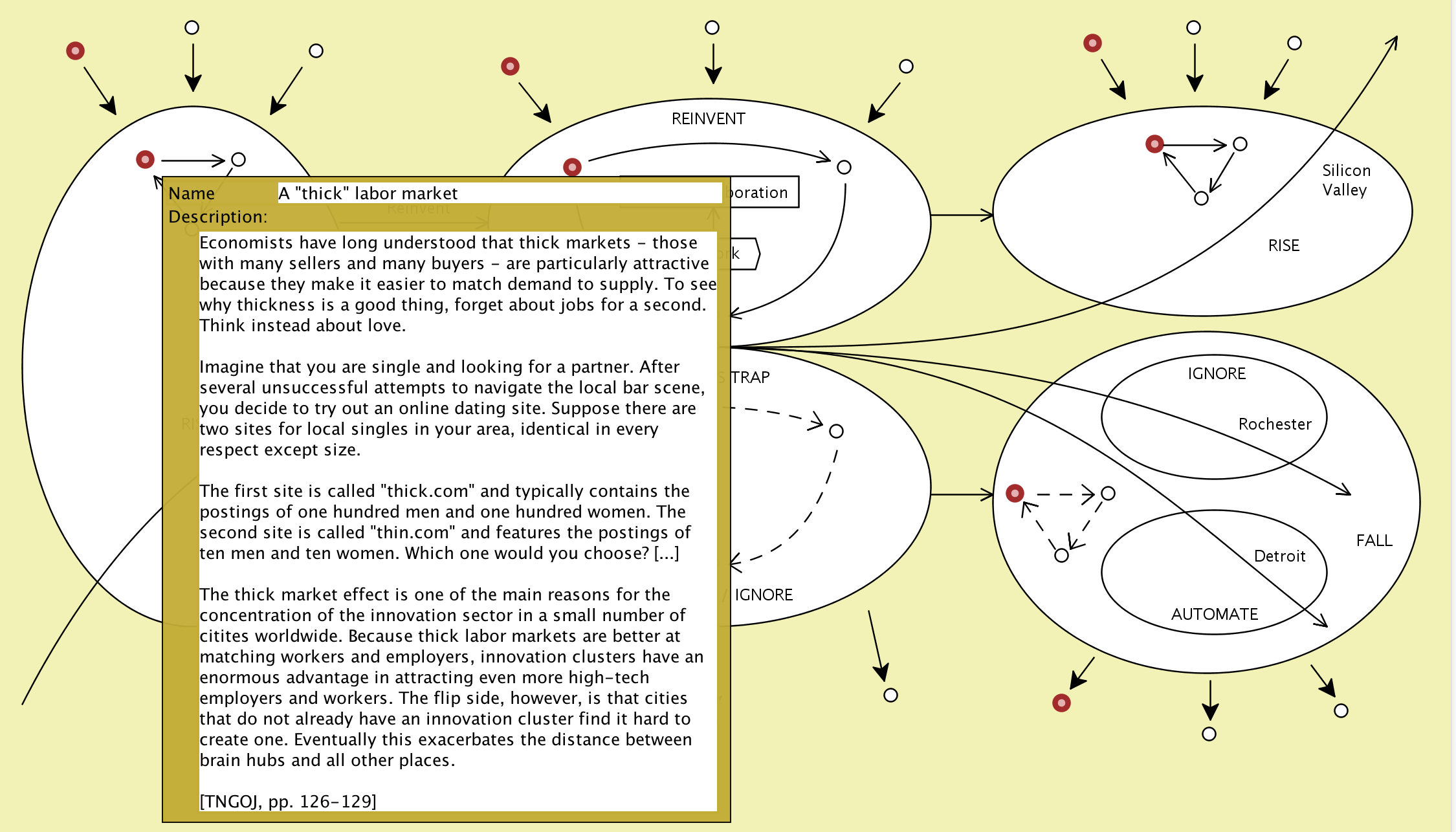 The Conzilla models screenshotted below are based on the information presented in the book The New Geography of Jobs by Enrico Moretti, 2012.