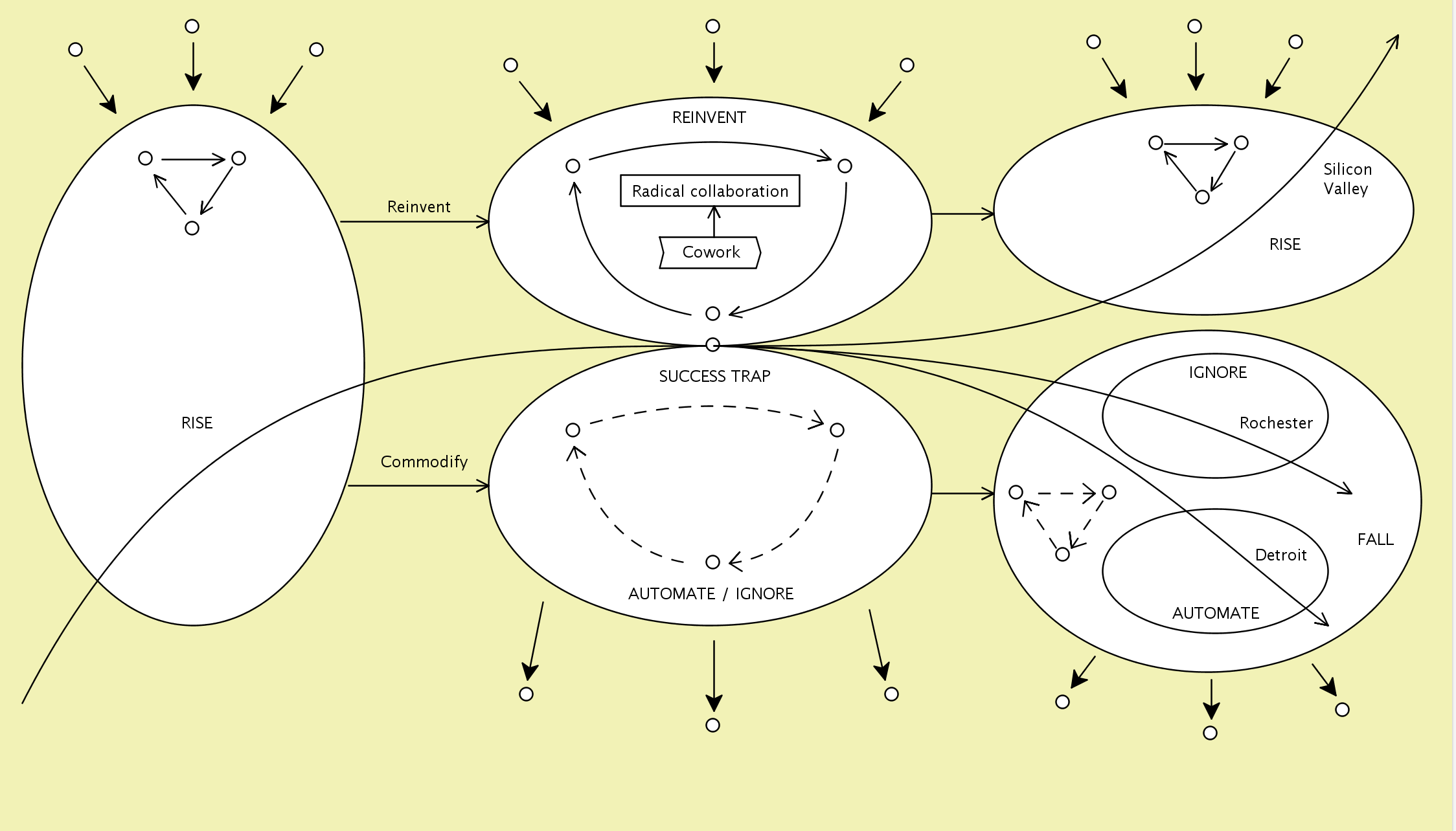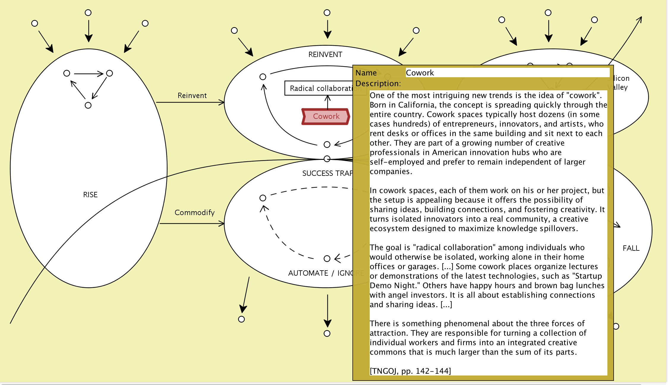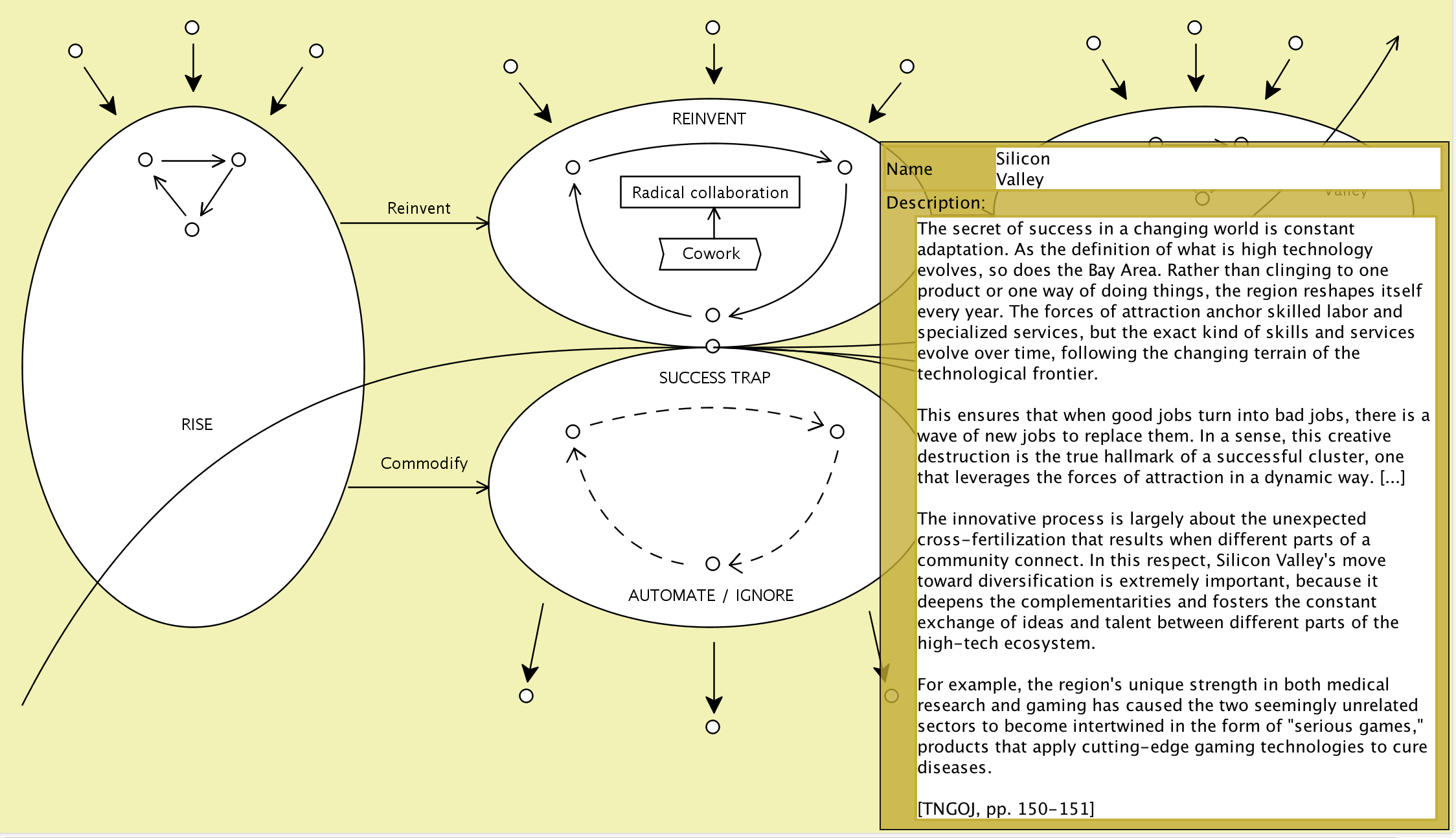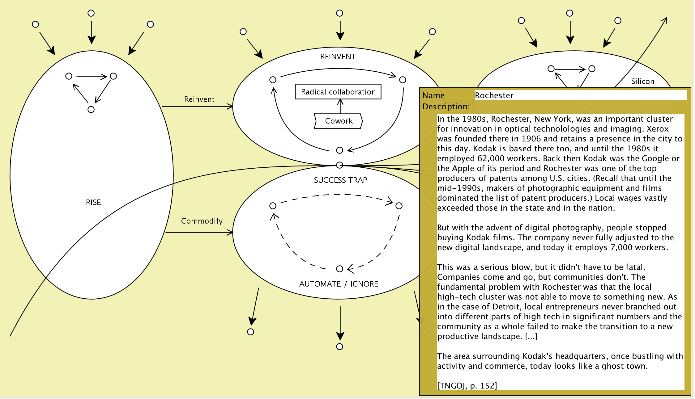 The Conzilla models screenshotted below are based on the information presented in the book The New Geography of Jobs by Enrico Moretti, 2012.