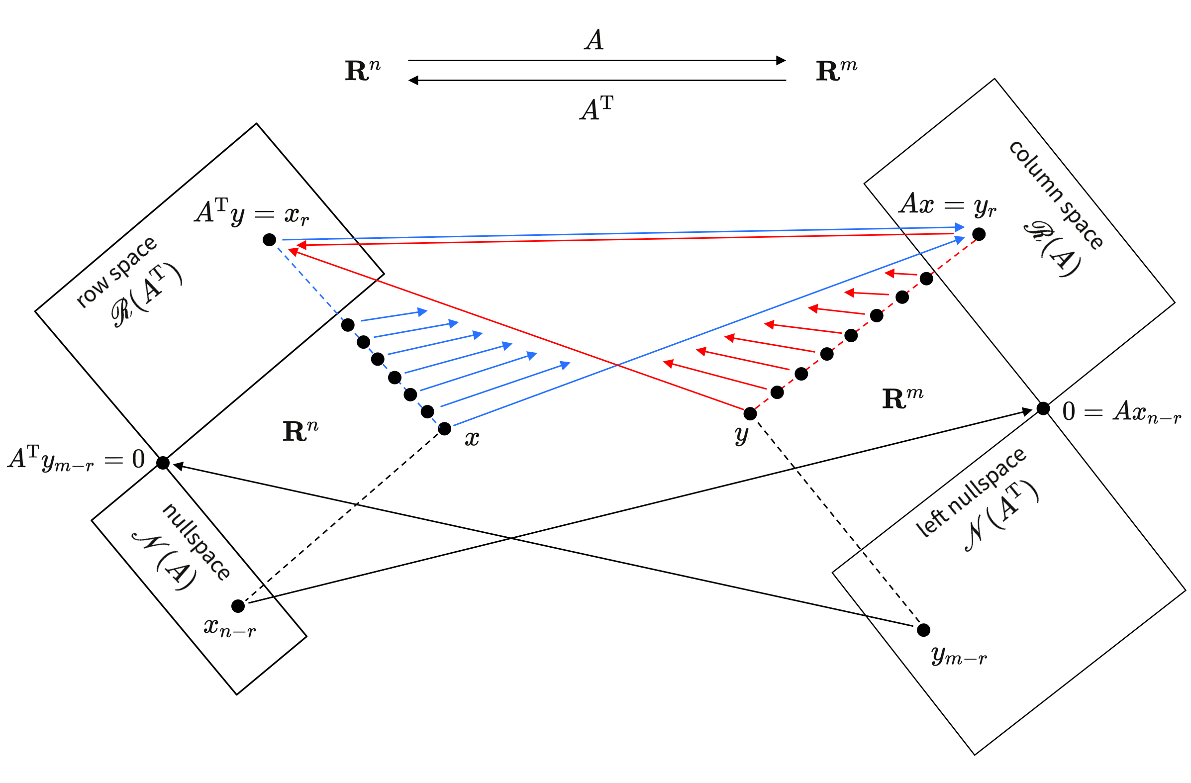 The nullspace of a linear map is perpendicular to the image space of its transpose