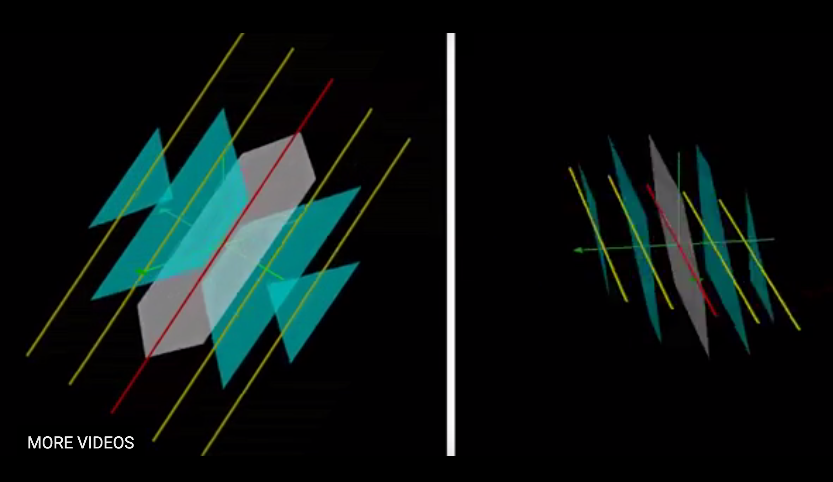 Hence the image planes of the light-blue planes of the space probe NEVER coincide with the same plane, no matter how we rotate the planes since, if they did coincide, the mapping could NOT have full rank. This full-rank configuration can be observed in the following screenshot from the video above: