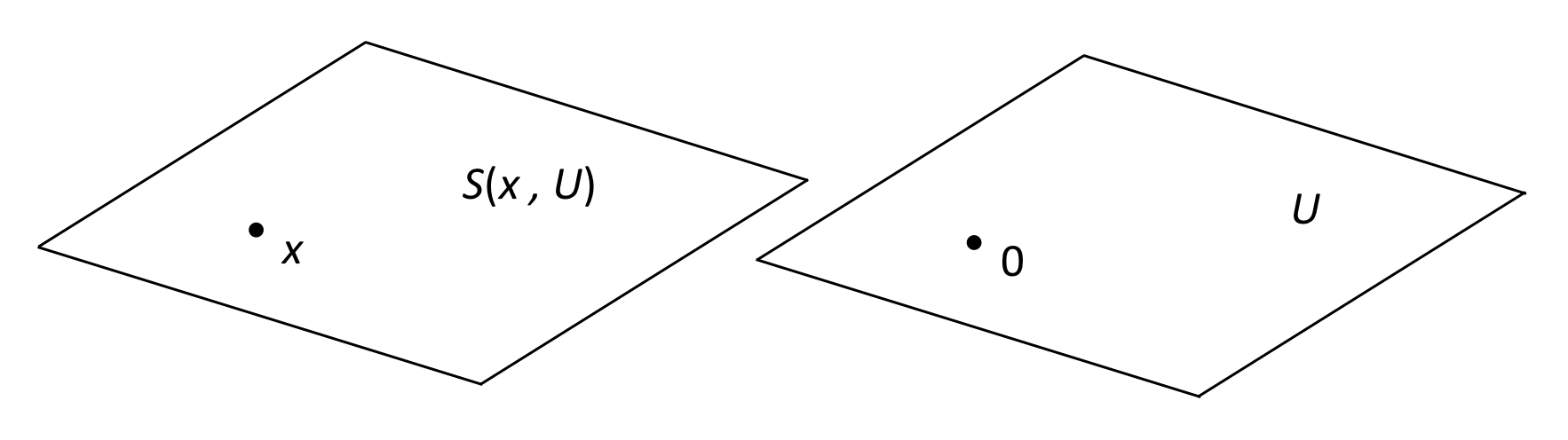Definition 11.1. The affine subspace \, S(x, U) \, of \, X \, consists of the points \, A x \,