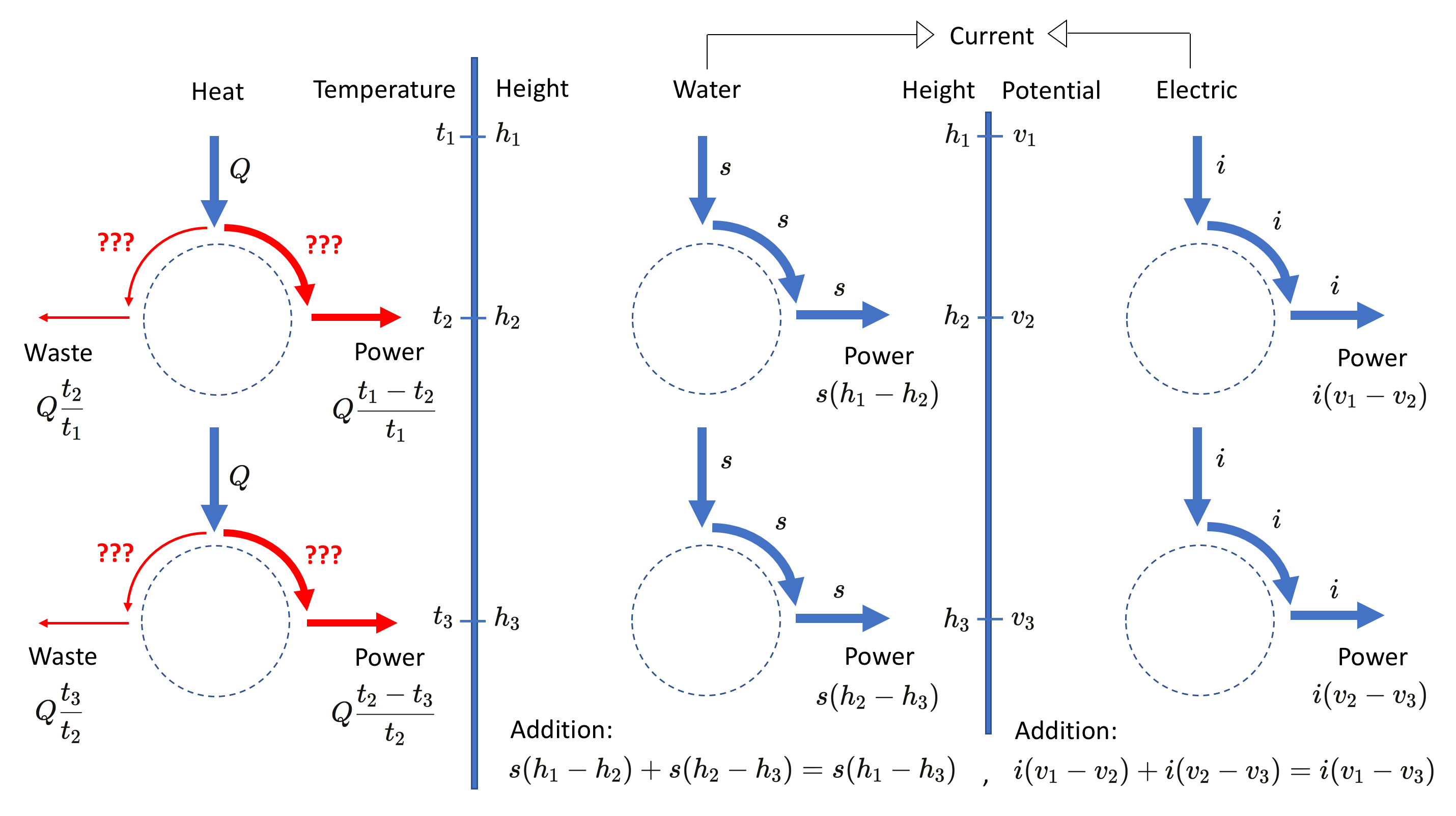 “The production of motive power in the steam-engine is therefore not due to a real consumption of the caloric, but its transfer from a hotter to a colder body…. We may with propriety compare the motive power of falling water depends on the quantity of caloric employed and on that which might be named, which we, in fact, will call its descent – that is to say, on the difference of temperature of the bodies between which the exchange of caloric is effected.”