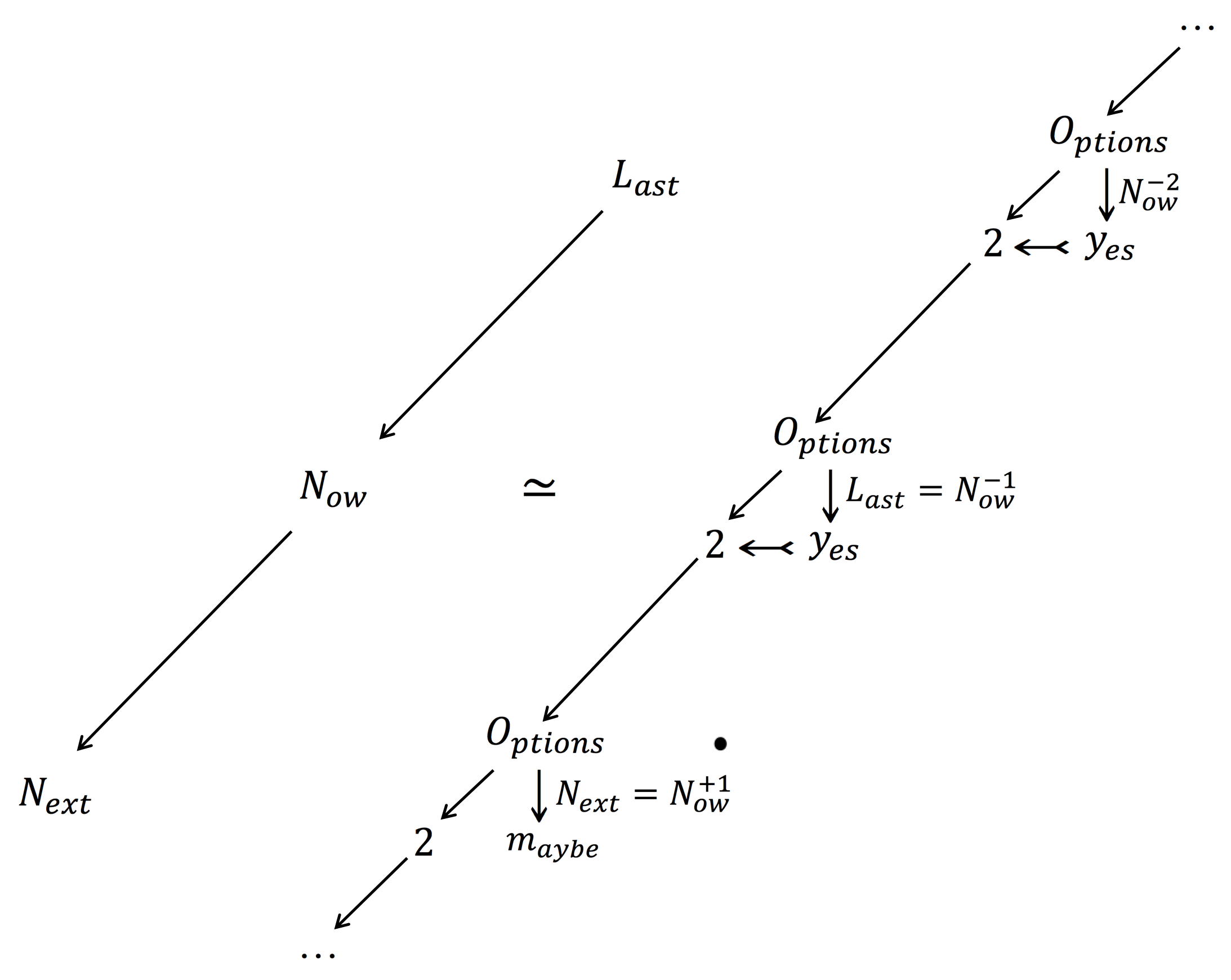 N_{ow} \equiv 2^{\; \log N_{ow}} = 2^{\; \int N_{ow}^{-1}} = 2^{\; \int 2^{\; \int N_{ow}^{-2}}} = 2^{\; \int 2^{\; \int 2^{\; \int N_{ow}^{-3}}}} = \cdots \, .